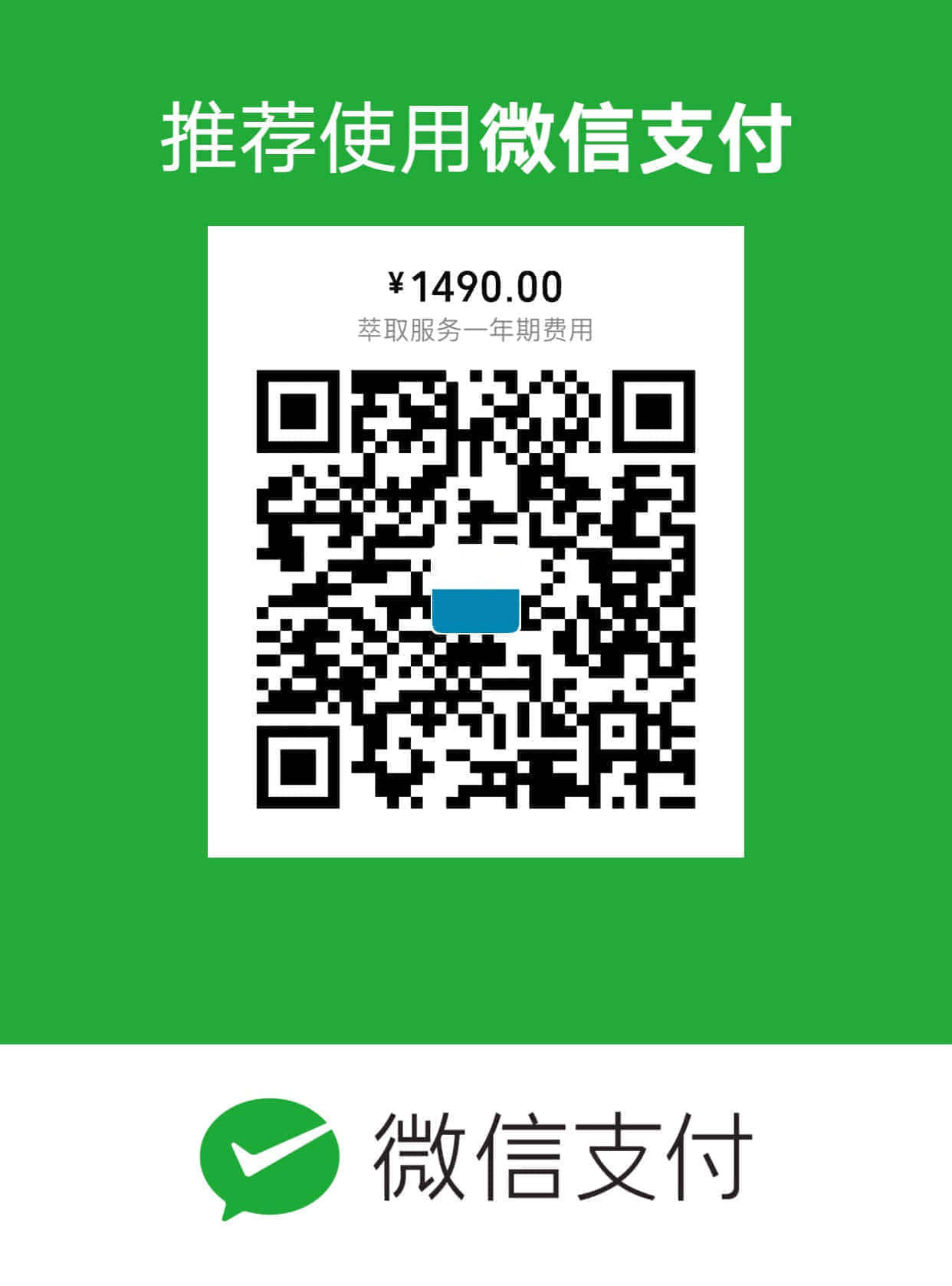 請掃描以下微信支付二維碼直接支付 AUTOF萃取服務 一年期費用。